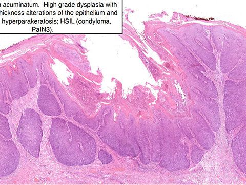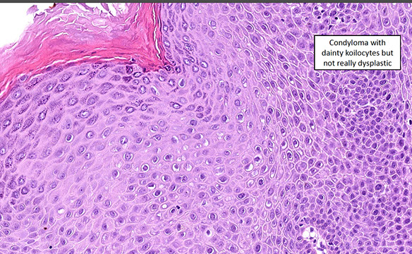 - also ddx Paget dz or mets (melanoma, urothelial ca [neg HPV ish], neuroendocrine small cell ca)
