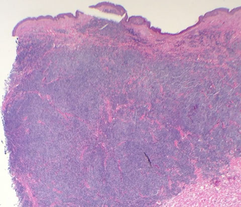 LCH - low power [13] - granulomatous-appearing infiltrate with lymphocytes and variably-sized histiocytes