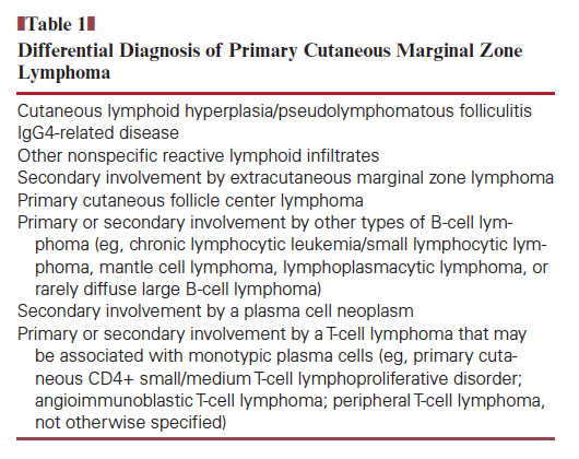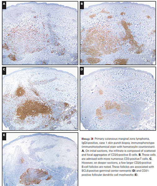 19. Gibson SE, Swerdlow S. How I diagnose Primary Cutaneous Marginal Zone Lymphoma. Am J Clin Pathol October 2020;154:428-449