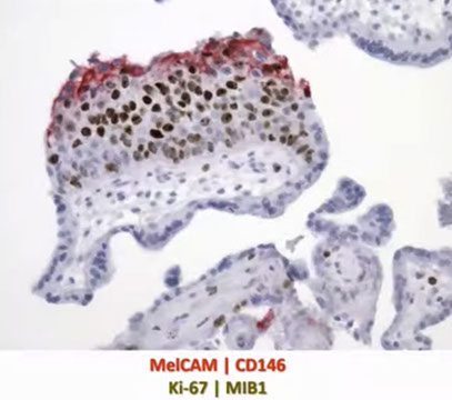 CHMs are distinct from the normal progression from proliferation to differentiation. At the tip it leaves the cells cycle and expresses CD146, which is expressed in the smooth muscle in the vessel wall of myometrium