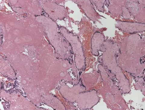 Early CHM. Seeing earlier and earlier CHMs due to ultrasound, here note the stromal and vascular degeneration. Pitfall is that you don't want to overcall missed abortion which can have similar degeneration.
