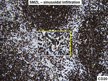 - Phenotype: SMZL typically are CD5-, CD10-, CD23-, CD43-, CyclinD1-, although cases studies by FCIPS are more often reported to be CD5 or CD10+
