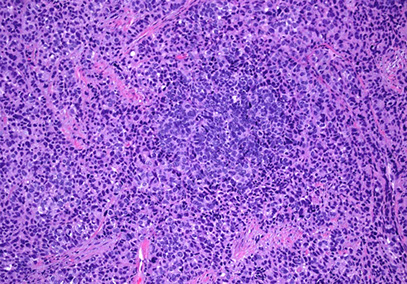 - Micro: nests/sheets of big cells c big nucleoli and lots o mits. ground glass cytoplasm, lots of inflam c eos and plasma cells