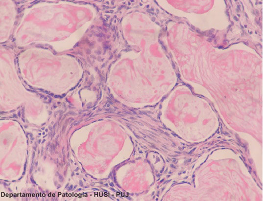 - IHC: (+) pan CK, CK7, CAM 5.2. EMA, calretinin, vimentin, CD10
