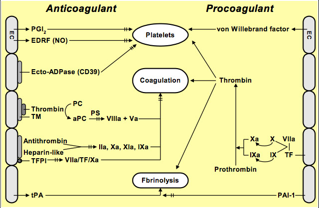 Thrombomodulin, Protein S, Heparan sulfate, TFPI- Tissue Factor Pathway Inhibitor