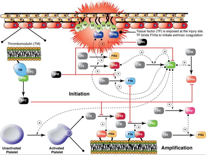 - goal is to maintain a free flowing circulation, but be able to mobilize coagulation as needed to stop blood loss.