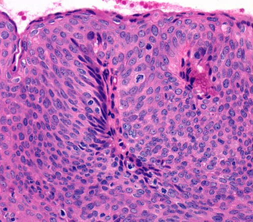 - also ddx Paget dz or mets (melanoma, urothelial ca [neg HPV ish], neuroendocrine small cell ca)