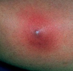Center of abscess is full of pus containing dead tissue, dead neutrophils and debris