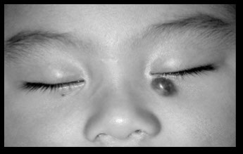 Multiple blue/violet dermal nodules/plaques on the face, genitalia and lower extremities feet and legs