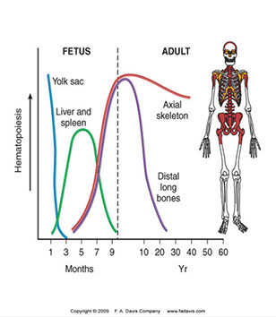 - throughout life (after childhood) HP recedes from limb bones towards axial skeleton and ends on long bones, which is why bmbx done on post iliac crest of adults and upper end of tibia in kiddos
