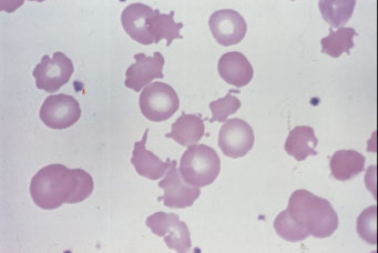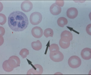 - carry O2, size of 6-8 microns, no nucleus, red cytoplasm c central pallor 1/3 of cell, no granules