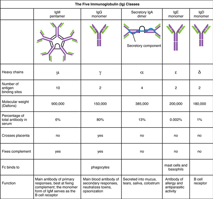1) IgG (IgG1, IgG2, IgG3, IgG4)
