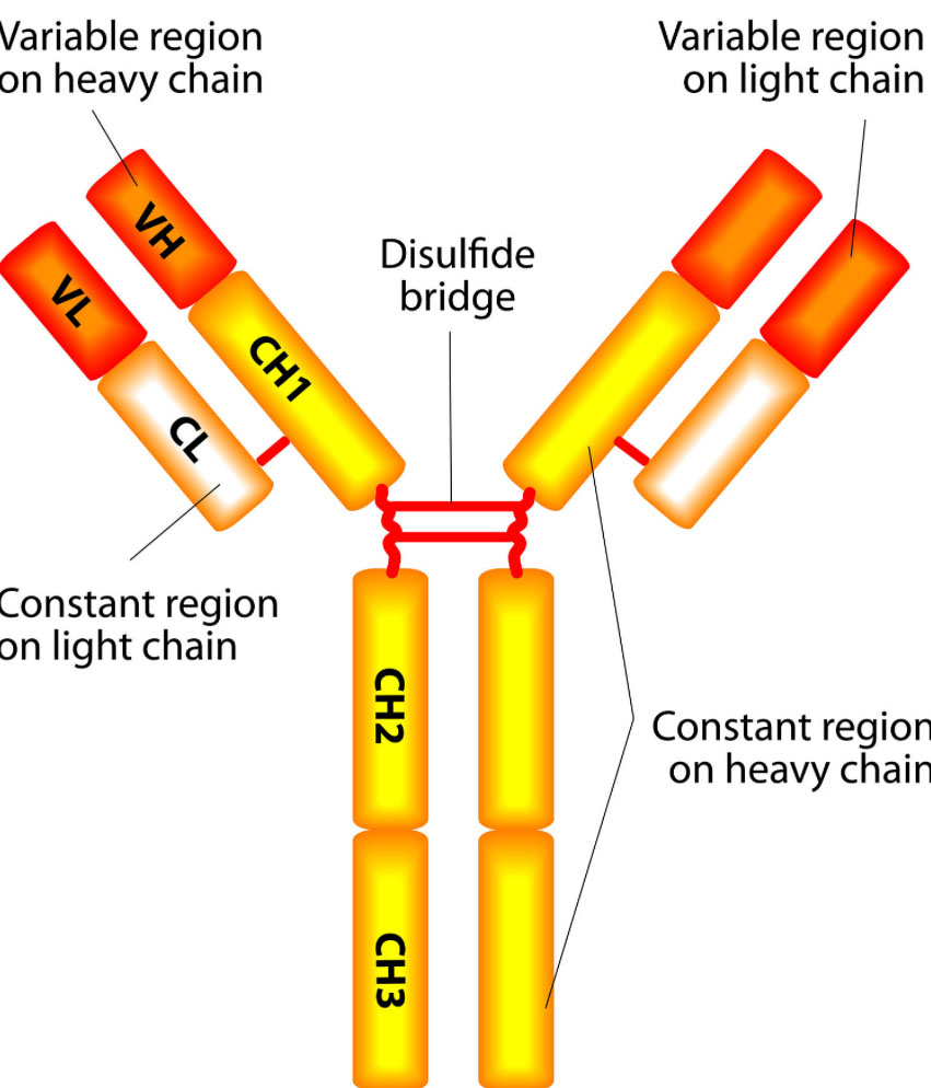 4 polypeptide genes, including 2 heavy chains and 2 light chains, bound by disulfide bonds