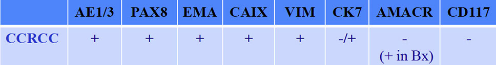 IHC: (+) CD117, PAX2/8, variable EPCAM