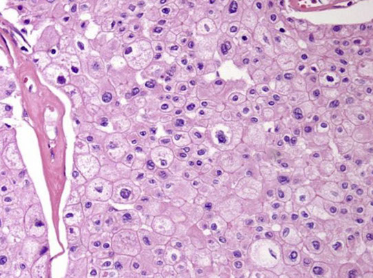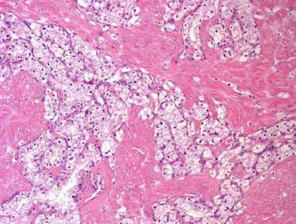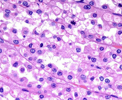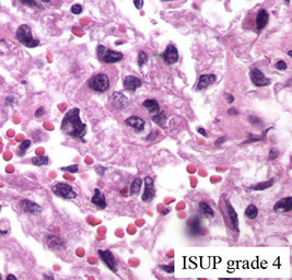 - if has prominent nucleoli (seen in ~1/2) corresponds to Fuhrman grades 3-4