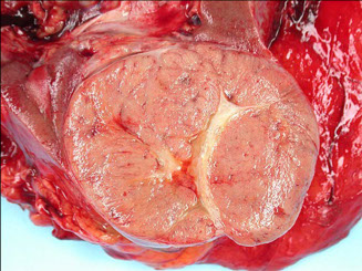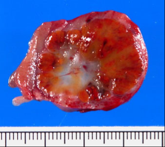 Gross: well circumscribed c solid grey to white appearance of cut surface
