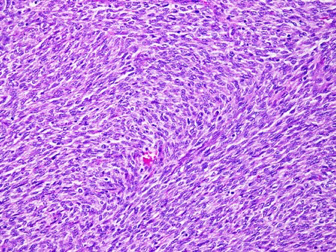 Micro: Cellular, monomorphic, epithelioid round cells, dense meshwork of vessels
