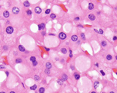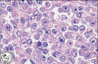 Consistent presence of large eosinophilic cells with large nuclei and prominent nucleoli