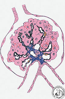 - renal lobules are in the cortex and have ascending interlobular arteries at the sides and have a single collecting duct (of Bellini) and surrounding nephron c medullary ray of Ferrein, which is the axis of the lobule