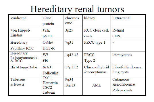 Genes: ? lots of abnormalities distinct from papillary RCC