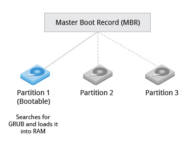 For systems using the BIOS/MBR method, the boot loader resides at the first sector of the hard disk also known as the Master Boot Record (MBR). The size of the MBR is just 512 bytes. In this stage, the boot loader examines the partition table and finds a bootable partition. Once it finds a bootable partition, it then searches for the second stage boot loader e.g, GRUB, and loads it into RAM (Random Access Memory).