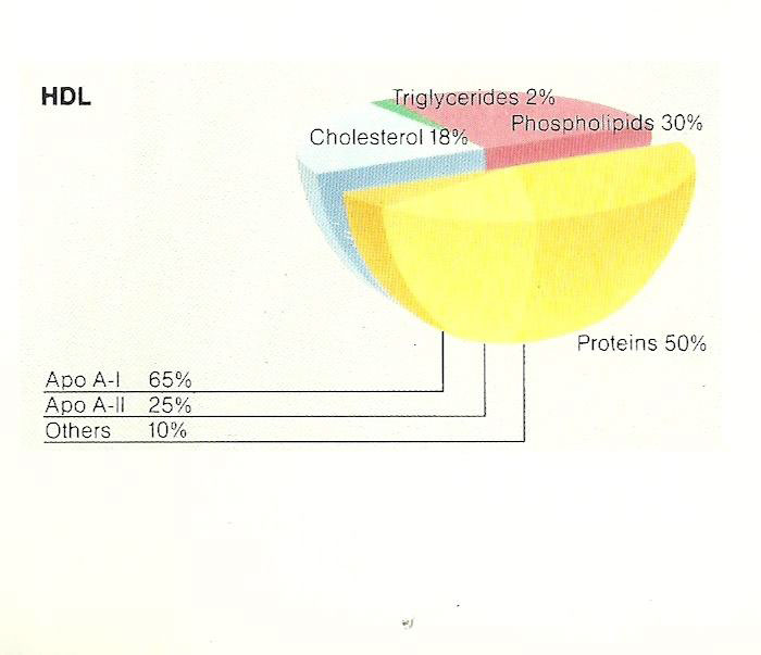 52% triglyceride, 22% cholesterol, 18% phospholipid, 8% protein