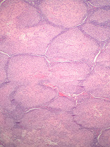 LCH - low power [13] - granulomatous-appearing infiltrate with lymphocytes and variably-sized histiocytes