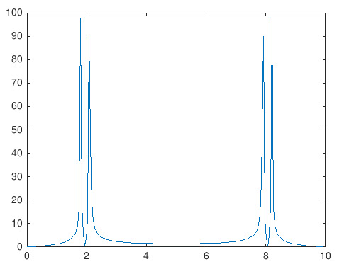 >> plot(f, abs(yfft))