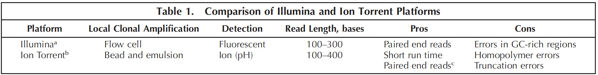 1) Illumina (HiSeq, MiSeq, NexSeq)