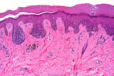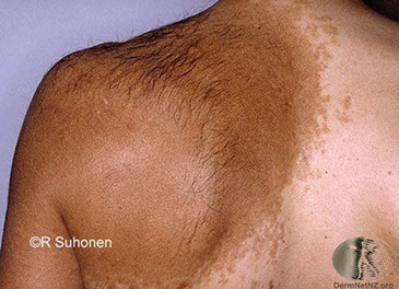 Micro: dec melanin pigment in basal layer of the epidermis and reduction in number of dopa-positive melanocytes