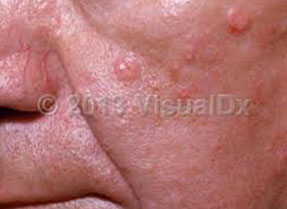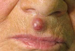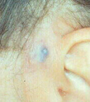 - 4/5 Males, usually on face, which grows quickly over about 2 months, then spontaneously regresses (slowly) over 6 months, leaving a depressed scar behind