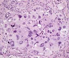 •Focal hyperpigmenteddermal clones, giant multinucleated cells