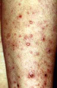 Ferguson-Smith type - lots of ulcerating tumors with atypical distribution