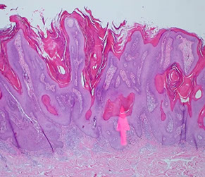 - can have basket-weave hyperkeratosis, or perhaps compact keratosis