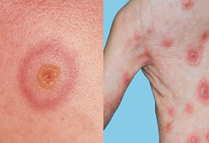 - can look similar to acral lentiginous melanoma (as a brown patch on the palms and soles)