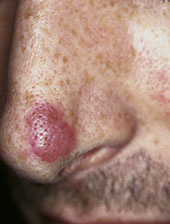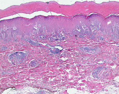 - wedge-shaped dermal infarct c base parallel to surface epithelium
