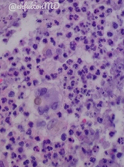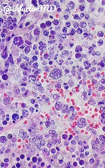- "Ziti and meatballs" groups of round spores and short curved hyphae in stratum corneum