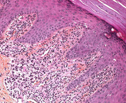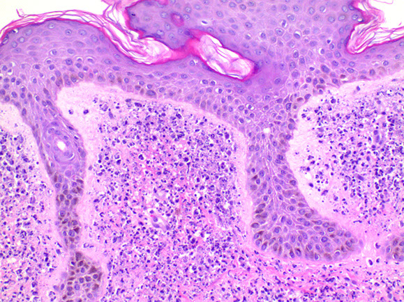 Micro: Compact corneum c papillomatosis that curves in towards the middle