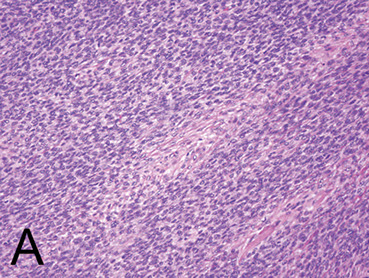 - Spindle-shaped, sparse cytoplasm, in whorls or storiform