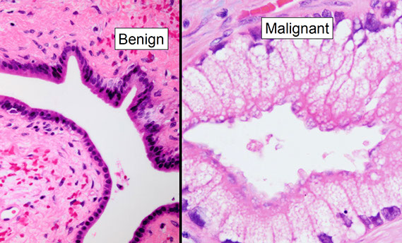 - if cell lining is very atypical or glands are invading into capsule or beyond, dx is mucinous cystadenocarcinoma
