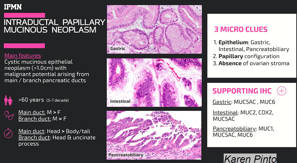Gross: mucous-producing tumors found in the larger ducts in the head of the pancreas and can be multifocal