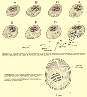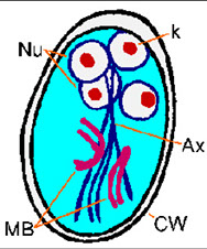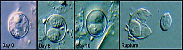 - cysts have no more than 4 nuclei and smooth rounded ends