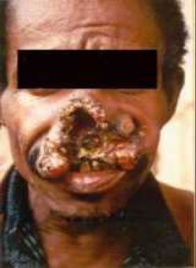 Sx; chronic chest pain, cough, blood-tinged sputum (rust colored), lung infiltration, nodules, abcesses