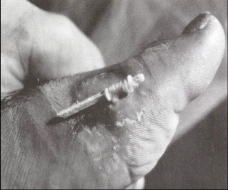 - Forked tailed cercariae of schistosomes that parasitize birds (ducks, geese, waterfowl) as well as mammals, burrow into the skin of humans swimming or working in water
