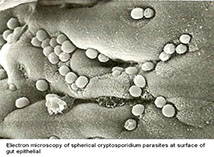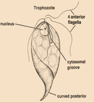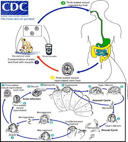 ● Ingestion of cysts (infectious stage) is followed by excystation in either the small or large bowel