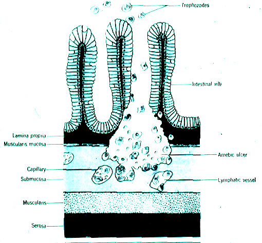 ● The trophozoite population then resides in the large bowel where tissue invasion may occur
