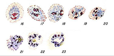 - Cytoplasm can have ingested RBC's