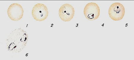 ● The four nuclei then divide to form eight nuclei (metacystic stage), cytoplasmic division follows and eight amebic trophozoites emerge