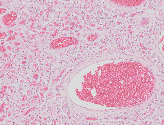 - stromal vessels are rare and nonbranching, can have nRBCs