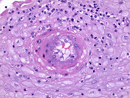 Early CHM. Seeing earlier and earlier CHMs due to ultrasound, here note the stromal and vascular degeneration. Pitfall is that you don't want to overcall missed abortion which can have similar degeneration.
